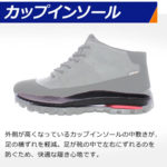 ● 中敷のカップインソールにより足の左右のブレを減らし、足を安定させます。
