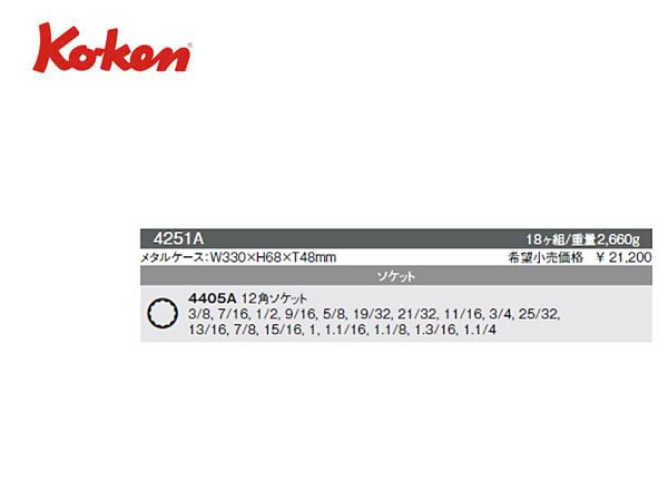Ko-ken(コーケン/山下工業研究所)1/2”ソケットセット(インチサイズ),18点【品番 4251A】