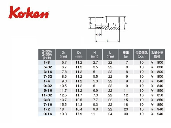 1/8” - 6ポイント【品番 2400A-1/8】