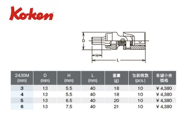 ● Ko-ken(コーケン)の差し込み角1/4”(6.35mm)のソケットです。 ● ソケットの先にヘックスレンチ(6角レンチ)がついたヘックスビットソケットです。 ● 角度が変えられるユニバーサルジョイント型のソケットです。 ● どのサイズもネコポスで発送が出来ます。
