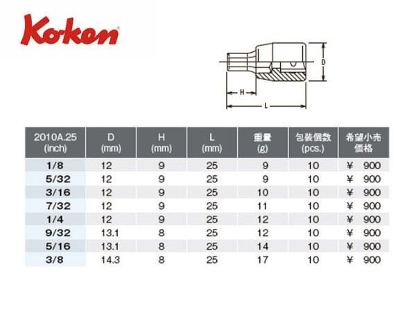 ● Ko-ken(コーケン)の差し込み角1/4”(6.35mm)のソケットセットです。