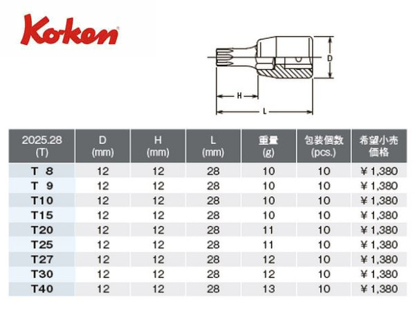 ● ソケットの先にトルクスレンチ(TORX/torx)がついたオス型のトルクスビットソケットです。