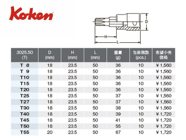 Ko-ken(コーケン/山下工業研究所)3/8”トルクスビットソケットセット【長さが選べます】
