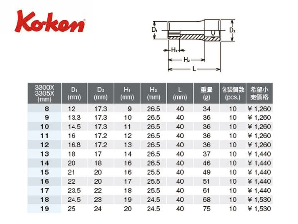 ● Ko-ken(コーケン)の差し込み角3/8”(9.5mm)のソケットセットです。