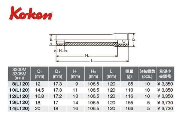 ● ディープソケットより更に長いエクストラディープタイプです。全長120mmです。