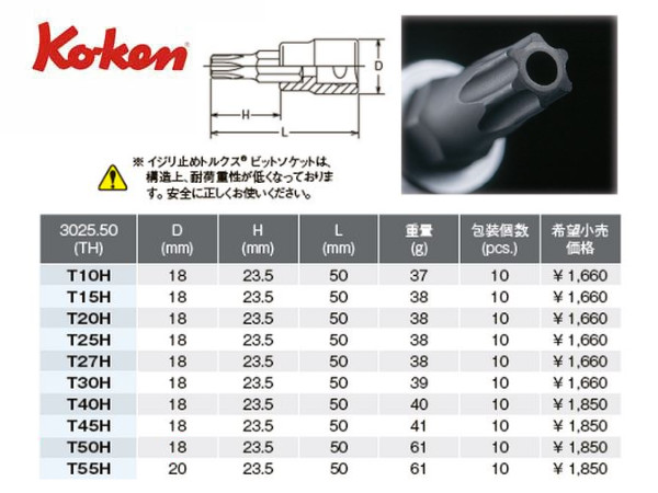※イジリ止めトルクスビットソケットは、構造上、耐荷重性が低くなっております。安全に正しくお使い下さい。