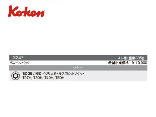 Ko-ken(コーケン/山下工業研究所)3/8”イジリ止めトルクスビットソケットセット,ロングタイプ
