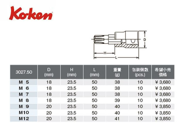 ● Ko-ken(コーケン)の差し込み角3/8”(9.5mm)のソケットです。 ● CV(Ribe CV)という形状のボルトを回す専用のビットソケットです。 ● スタンダードタイプです。全長50mmです。 ● どのサイズもネコポスで発送が出来ます。