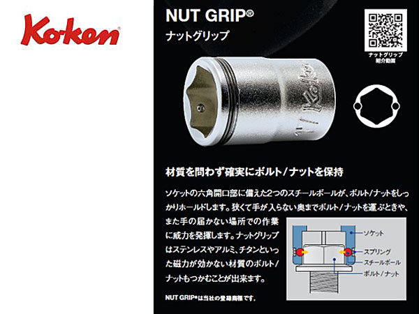 ● ソケット内部のスチールボールが、ボルト/ナットを確実に保持します。狭くて手が入らない奥までボルト/ナットを運ぶときや、また手の届かない場所での作業に威力を発揮します。ステンレスやアルミ、チタンといった磁力の効かない素材のボルト/ナットもつかむことが出来ます。
