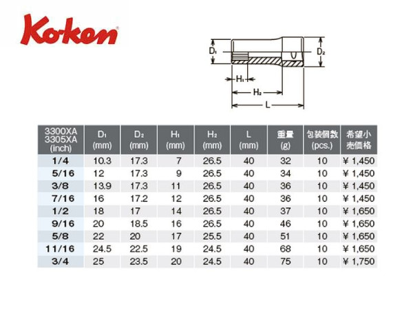 ● Ko-ken(コーケン)の差し込み角3/8”(9.5mm)のソケットセットです。