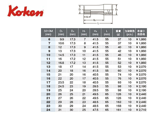 ● Ko-ken(コーケン)の差し込み角3/8”(9.5mm)のソケットです。