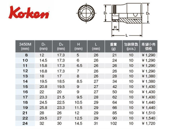 ● Ko-ken(コーケン)の差し込み角3/8”(9.5mm)のソケットセットです。