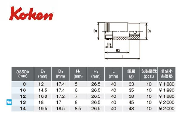 Ko-ken(コーケン/山下工業研究所)3/8”ナットグリップセミディープソケット(ミリ)【品番 3350X】 | 正栄機工輸入センター