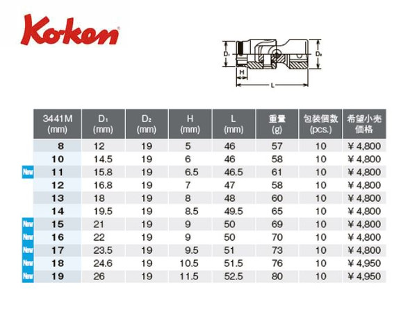 Ko-ken(コーケン/山下工業研究所)3/8”ナットグリップユニバーサルソケットセット(ミリ) | 正栄機工輸入センター