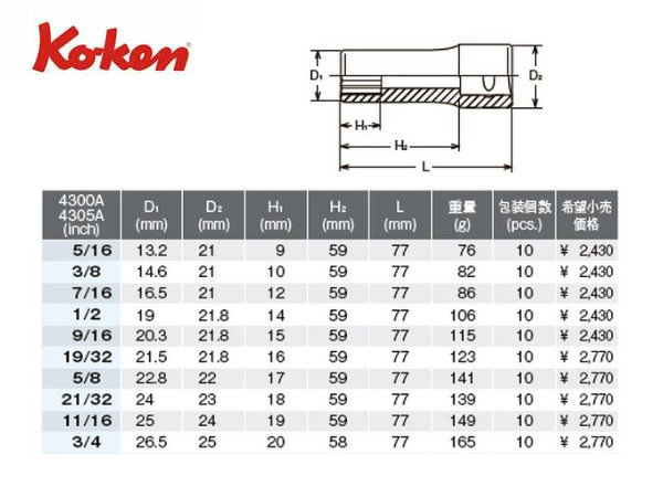 ● Ko-ken(コーケン)の差し込み角1/2”(12.7mm)のソケットです。