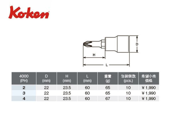 ● Ko-ken(コーケン)の差し込み角1/2”(12.7mm)のソケットです。 ● ソケットの先にプラスドライバーがついたドライバービットソケットです。 ● どのサイズもネコポスで発送が出来ます。