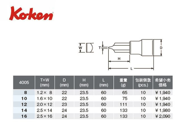 ● Ko-ken(コーケン)の差し込み角1/2”(12.7mm)のソケットです。 ● ソケットの先にマイナスドライバーがついたドライバービットソケットです。 ● どのサイズもネコポスで発送が出来ます。