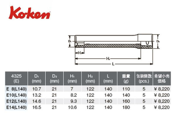 Ko-ken(コーケン/山下工業研究所)1/2”トルクスエクストラディープソケット【品番 4325-L140】 | 正栄機工輸入センター