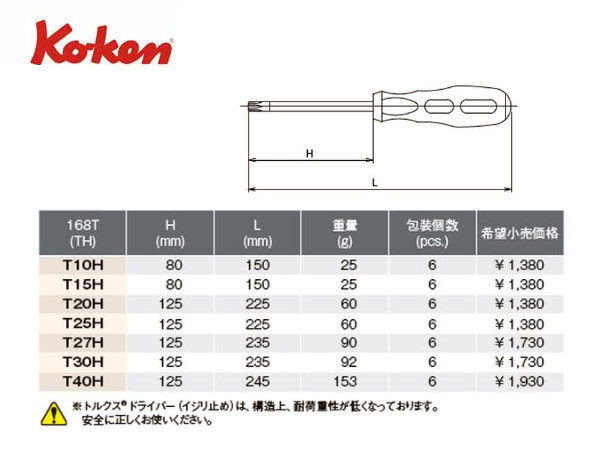 Ko-ken(コーケン/山下工業研究所)イジリ止めトルクスドライバー【品番 168T-TH】 | 正栄機工輸入センター