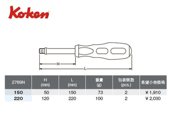 ● Ko-ken(コーケン)の差し込み角1/4”(6.35mm)のグリップハンドルです。 ● 長さが2種類あります。