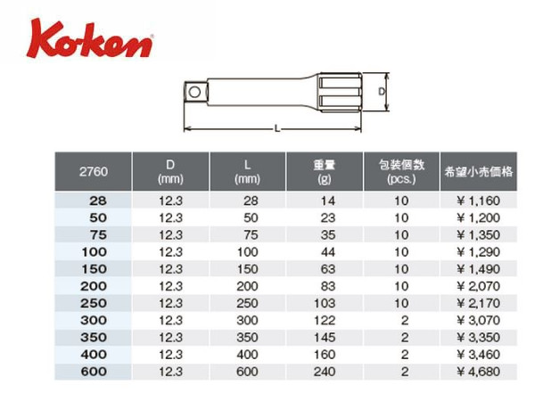 ● Ko-ken(コーケン)の差し込み角1/4”(6.35mm)のエクステンションバーです。 ● ソケットを延長する工具です。 ● 全長28mm〜600mmまで豊富なラインナップがあります。こちらのページではネコポスで発送が出来る小さめのサイズ(全長28mm〜300mmまで)が選べます。