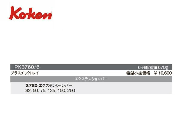 ● Ko-ken(コーケン)の差し込み角3/8”(9.5mm)のエクステンションバーセットです。 ● ソケットを延長する工具です。 ● プラスチックトレイに入っています。