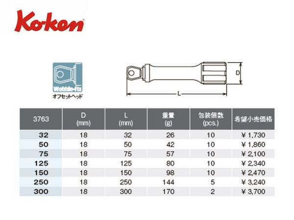 ● Ko-ken(コーケン)の差し込み角3/8”(9.5mm)のエクステンションバーセットです。