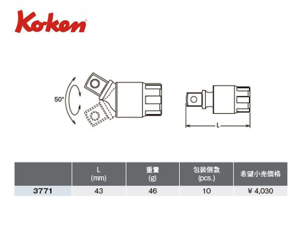 Ko-ken(コーケン/山下工業研究所)3/8”ユニバーサルジョイント,ボールジョイント【品番 3771】