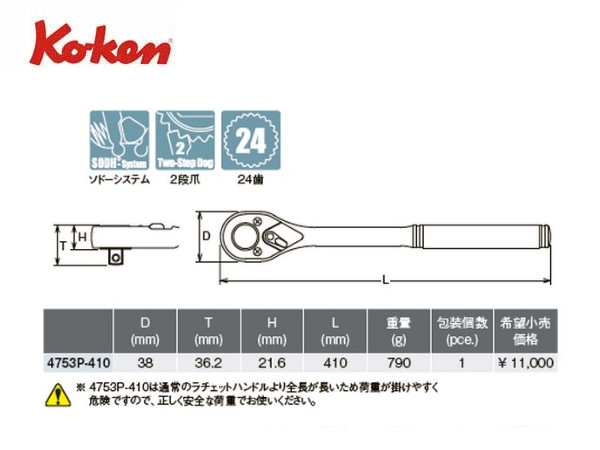 Ko-ken(コーケン/山下工業研究所)1/2”ラチェットハンドル,ロング,ポリッシュグリップ【品番 4753P-410】