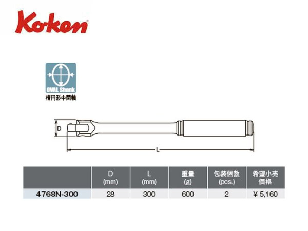Ko-ken(コーケン/山下工業研究所)1/2”スピンナハンドル,ショート,セレーショングリップ【品番 4768N-300】
