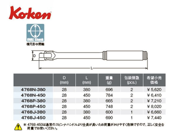 Ko-ken(コーケン/山下工業研究所)1/2”スピンナハンドル,スタンダード,セレーショングリップ【品番 4768N-380】