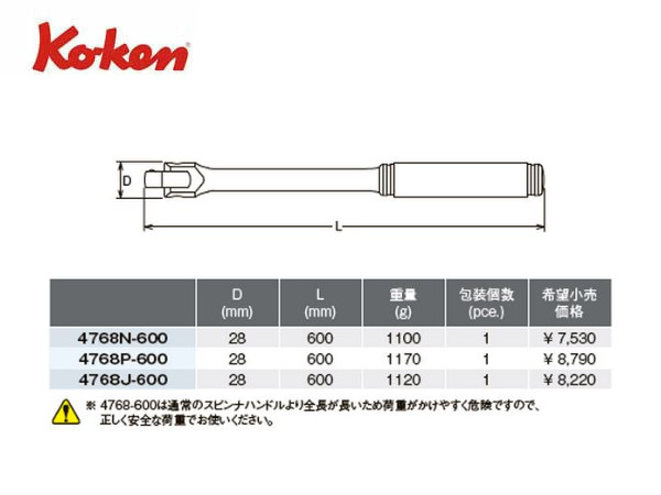 ● Ko-ken(コーケン)の差し込み角1/2”(12.7mm)のスピンナハンドルです。 ● ロングタイプです。 ● 力の入れやすい太めの滑り止めグリップ(セレーショングリップ)です。