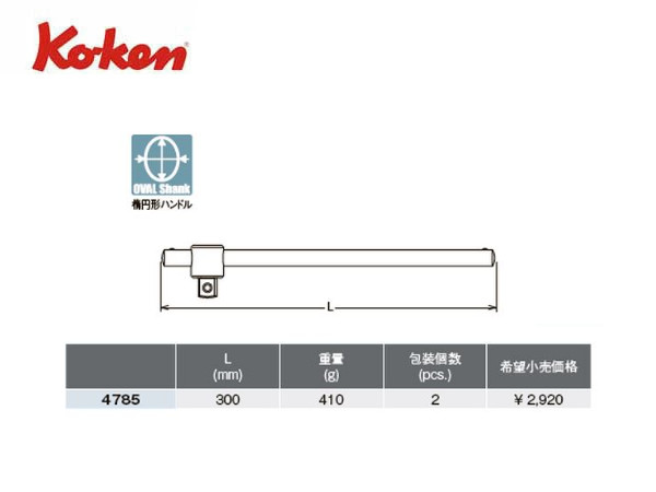 Ko-ken(コーケン/山下工業研究所)1/2”T型スライドハンドル【品番 4785】