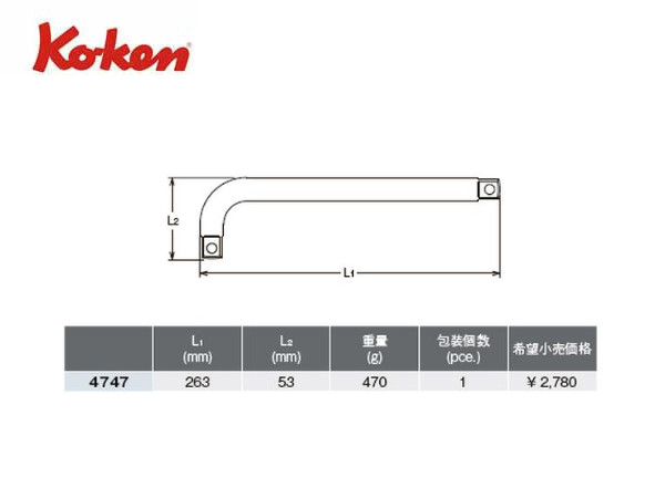 Ko-ken(コーケン/山下工業研究所)1/2”L型ハンドル【品番 4747】