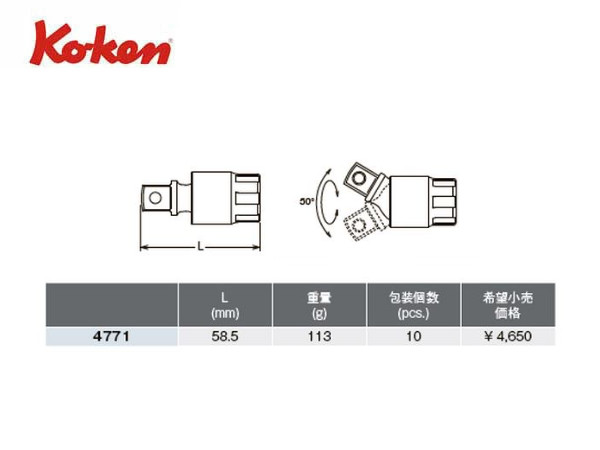 Ko-ken(コーケン/山下工業研究所)1/2”ユニバーサルジョイント,ボールジョイント【品番 4771】