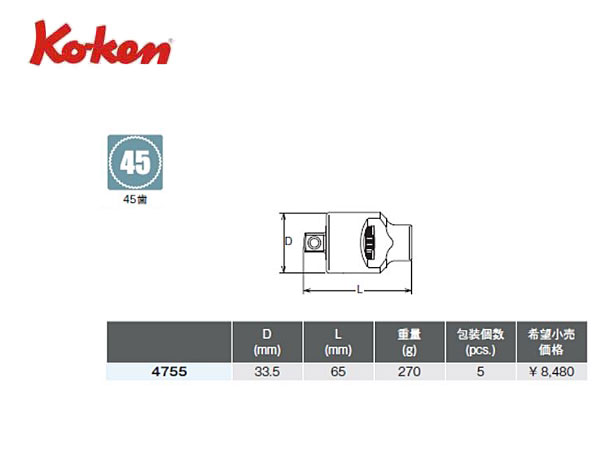 ● Ko-ken(コーケン)の差し込み角1/2”(12.7mm)のラチェットアダプターです。 ● ラチェットハンドルのヘッド部分に差し込み角が付いた工具です。スピンナハンドルやT型ハンドル(またはT型スライドハンドルとエクステンションバー)などと組み合わせることでそれぞれの工具にラチェット機能を追加できます。