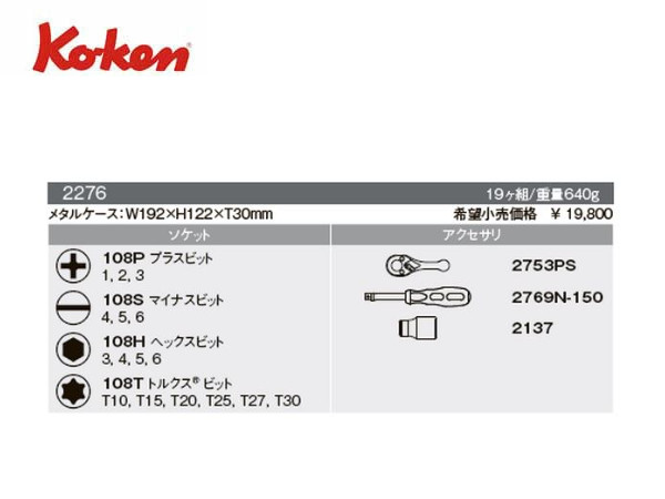 Ko-ken(コーケン/山下工業研究所)1/4”ツールセット,19点【品番 2276】