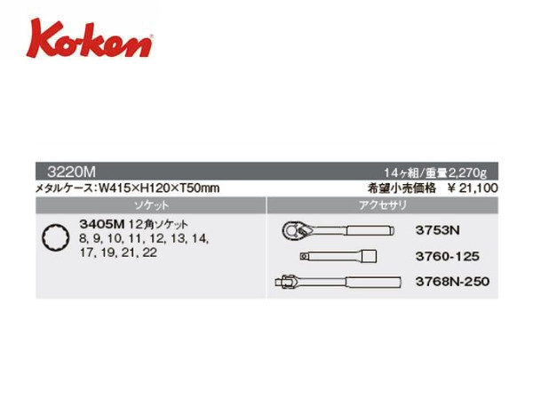 Ko-ken(コーケン/山下工業研究所)3/8”ツールセット,14点【品番 3220M】