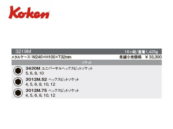 Ko-ken(コーケン/山下工業研究所)3/8”ヘックスビットソケットセット,16点【品番 3219M】