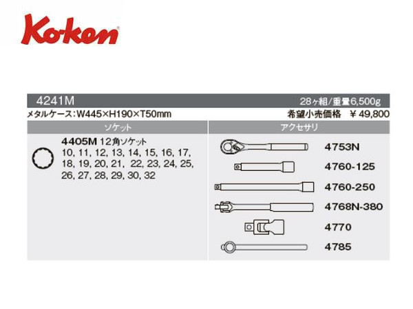 Ko-ken(コーケン/山下工業研究所)1/2”ツールセット,28点【品番 4241M】