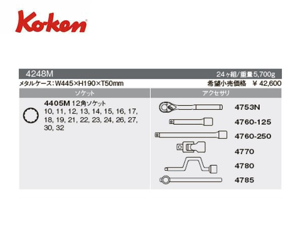 Ko-ken(コーケン/山下工業研究所)1/2”ツールセット,24点【品番 4248M】 | 正栄機工輸入センター