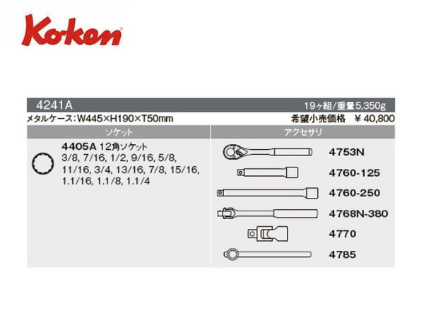 Ko-ken(コーケン/山下工業研究所)1/2”ツールセット,19点【品番 4241A】 | 正栄機工輸入センター