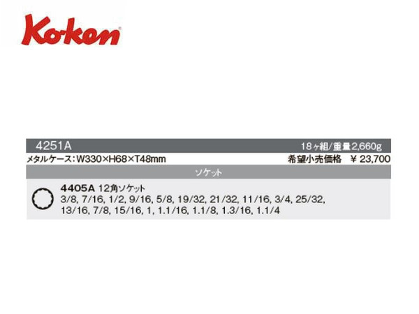 Ko-ken(コーケン/山下工業研究所)1/2”ソケットセット(インチサイズ),18点【品番 4251A】
