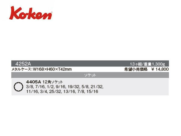 Ko-ken(コーケン/山下工業研究所)1/2”ソケットセット(インチサイズ),13点【品番 4252A】