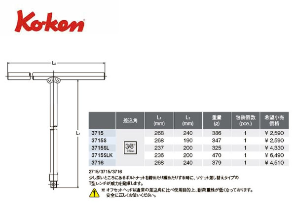 ● Ko-ken(コーケン)の差し込み角3/8”(9.5mm)のT型スライドスピンハンドルです。