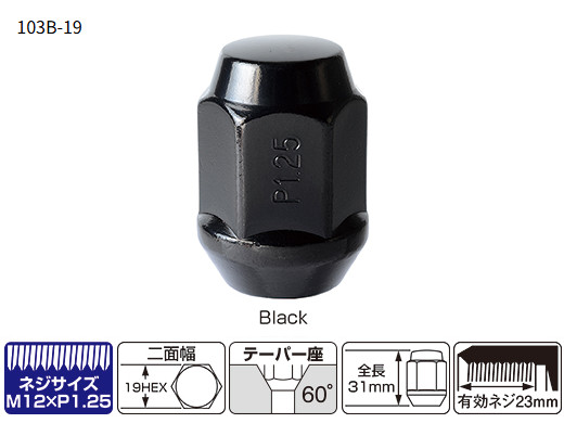 KYO-EI(協永産業)袋ナット,ブラック【103SB】21mm,M12×P1.25